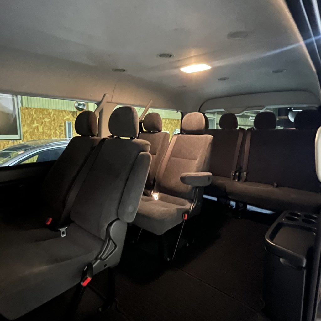 今回はお子様3人のチャイルドシート装着と、趣味であるキャンプの荷物をたくさん積められるようにと広い車内のハイエースをお求めいただきました。